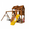 Детский городок изготовлен из северной древесины хвойных пород, обработанной безопасной декоративно-защитной пропиткой. Технология значительно увеличивает срок службы конструкций, повышает прочность древесины, защищает её от гниения и грибков. Обработка придаёт дереву приятный оттенок, проявляет и подчёркивает его текстуру. Используемая пропитка не содержит токсичных компонентов, экологична и абсолютно безопасна для ребёнка. Состав прошёл санитарно-эпидемиологическую экспертизу в Центре гигиены и эпидемиологии в г. Нижнекамску.