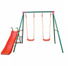 Комплектация: Металлоконструкция, комплект крепежа (болты, гайки, шайбы),пластиковые качели "3 в 1" (для детей до 3-х лет), пластиковые качели "Лодочка" (дети3-14 лет), (болты, рым-гайки, шайбы, карабины для крепления качелей), канат (длина 2 метра).